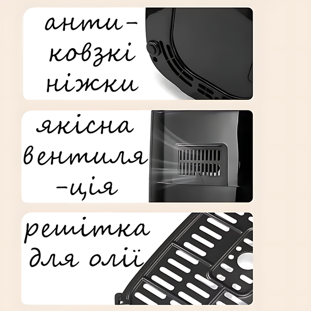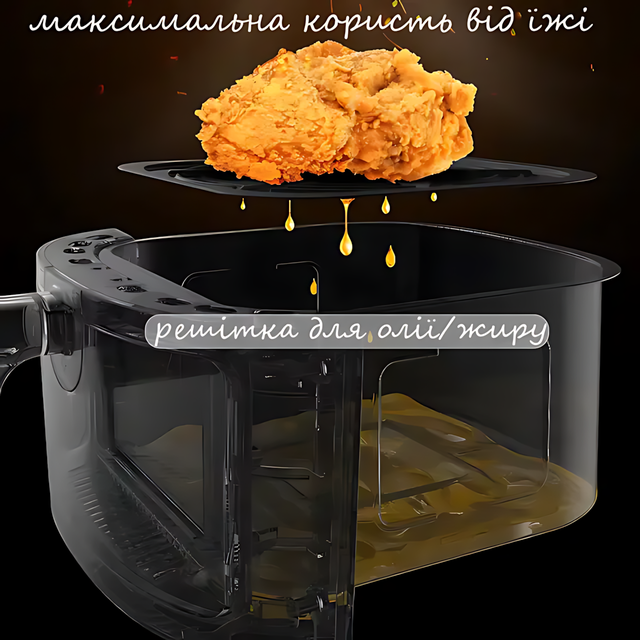 Мощность 2000 Вт обеспечивает быстрый нагрев и равномерное приготовление, а инновационная система циркуляции горячего воздуха дает возможность жарить, запекать, готовить на гриле. И выпекать с минимальным количеством масла! – до 80% меньше жира, чем при традиционной жарке.