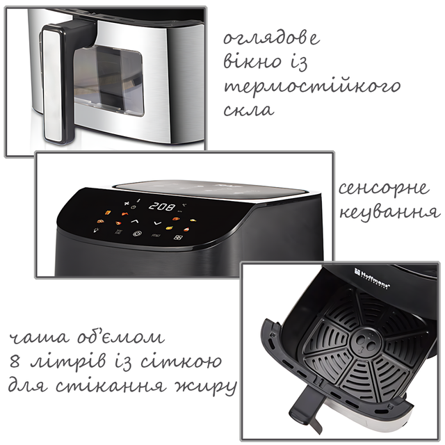 Аэрофритюрница Hoffmans HM-785 – это многофункциональный кухонный прибор нового поколения, созданный для тех, кто ценит вкусную, полезную еду. Вместительная чаша на 8 литров позволяет готовить блюда сразу для всей семьи, компании друзей.