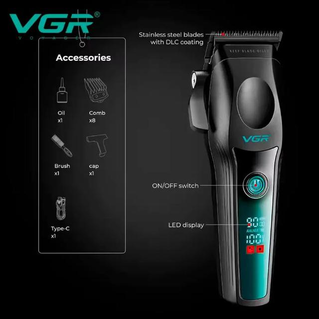 Машинка VGR V-195 – это премиальный инструмент для профессиональных мастеров, созданный с акцентом на мощность, комфорт и долговечность. Ее бесщеточный мотор BLDC выдает до 9000 об/мин, что позволяет легко справляться с волосами любой густоты и жесткости.