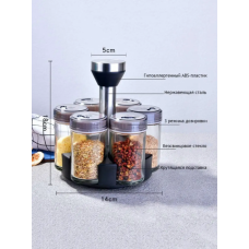 Карусель для специй с набором стеклянных баночек 6 шт. SpiceKit OT-108-7 Органайзер-спецовница с вращением