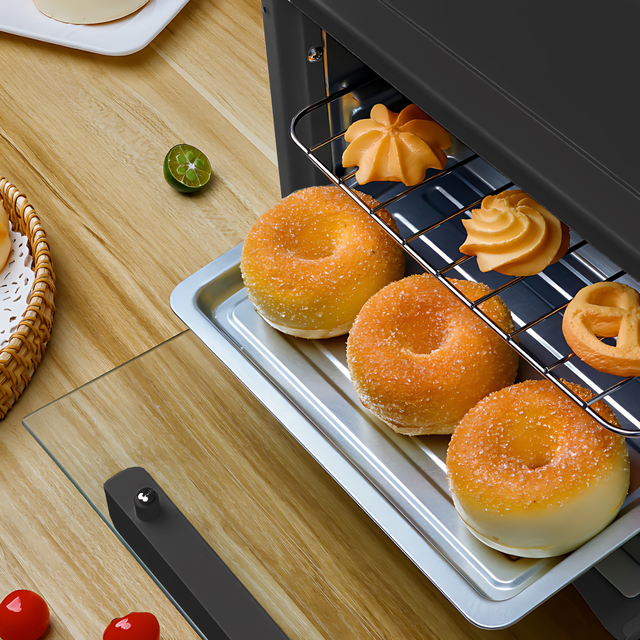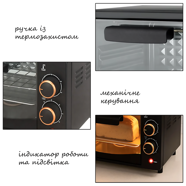 Стеклянная дверца позволяет следить за процессом, а устойчивая конструкция с противоскользящими ножками гарантирует надежность. Благодаря компактным размерам духовка легко помещается даже на небольшой рабочей поверхности.
