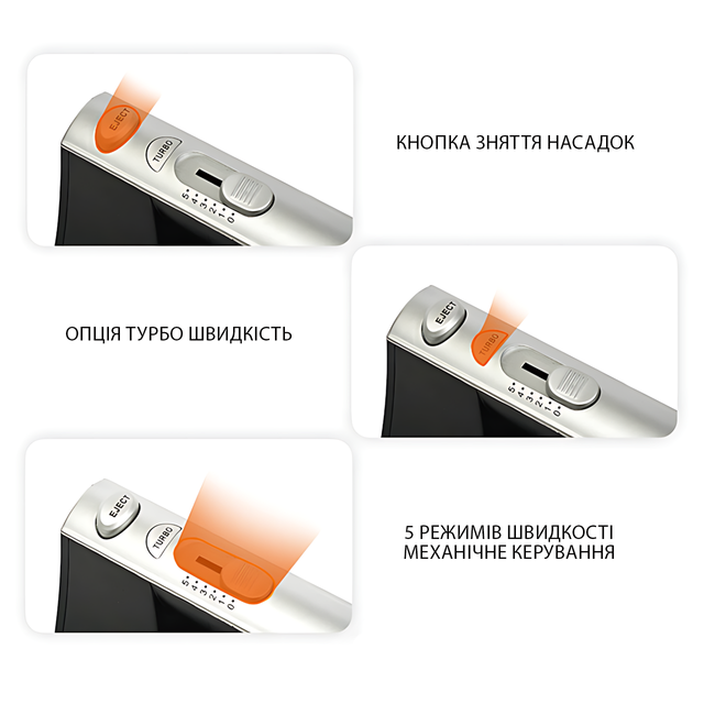 Ручной миксер Hoffmans HM-8836, 600 Вт, 5 скоростей + Турбо, корпус пластик + нерж. сталь, насадки-венчики и крюки для теста, питание от сети 220В