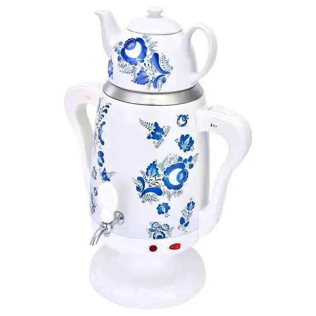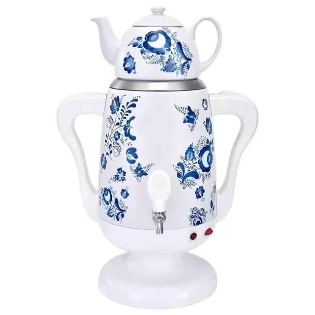 Электрический Самовар 2 в 1 на 3.5 л с Фарфоровым Заварным Чайником на 0.6 л RAF R.7118W Белый с Рисунком