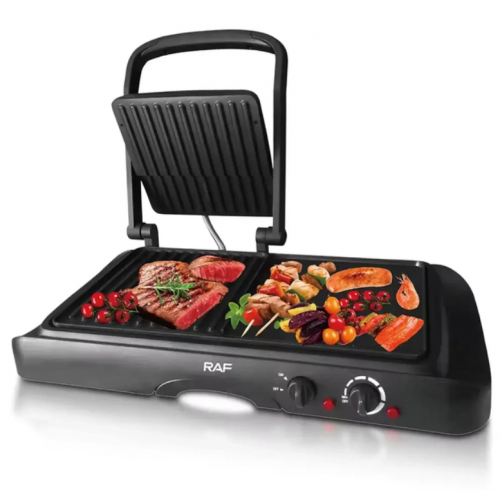 Электрогриль RAF R.2695 — это универсальный кухонный прибор, который объединяет в себе функции контактного гриля и жарочной поверхности. Он позволит вам готовить вкусные и полезные блюда с минимальным количеством масла или вовсе без него, что делает пищу более диетической.