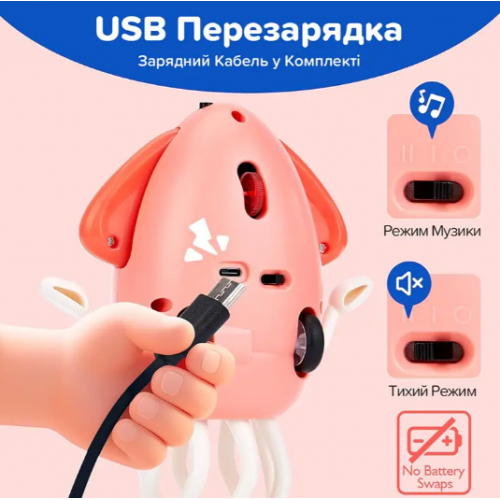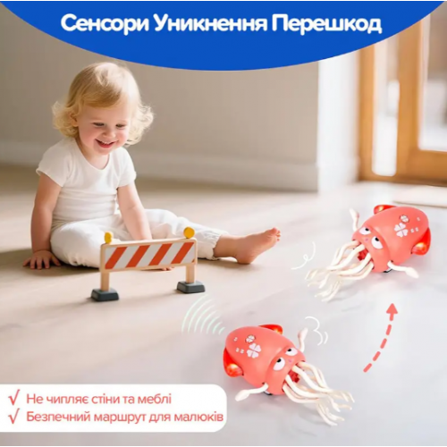 Стимулирует активность: благодаря движению осьминога дети начинают активно бегать, прыгать и веселиться.