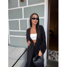 Комплект женский осенний кардиган и палаццо с поясом, кашемировый размер 42-46 Модель 1526-2379 Цвет: черный