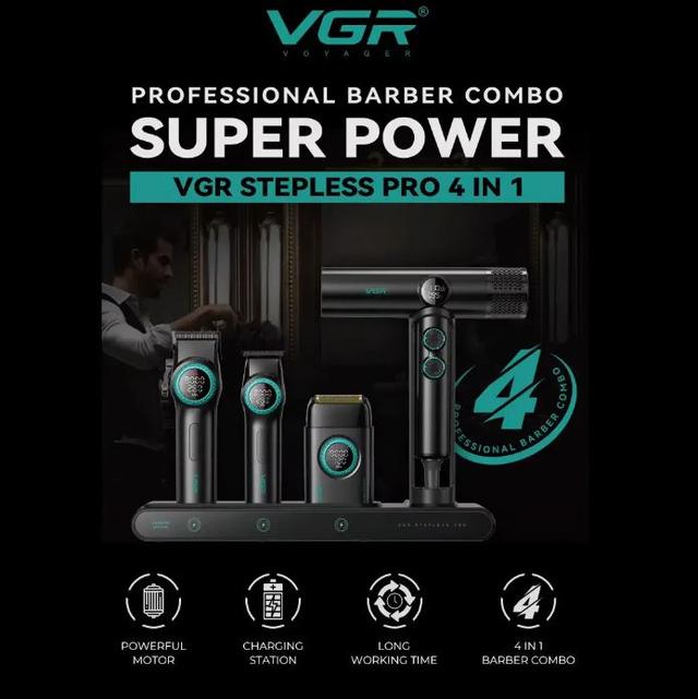 Комплект VGR STEPLERSS RPO 4 IN 1 – универсальный набор в ярком дизайне, сочетающий машинку для стрижки, триммер, электробритву и компактный фен. Все приборы выполнены в едином стиле и предназначены как для домашнего, так и дорожного использования. Эргономичные корпуса обеспечивают удобный хват и точное управление, а беспроводное питание и портативный дизайн позволяют использовать приборы без привязки к розетке, создавая ощущение профессионального ухода в любом месте.