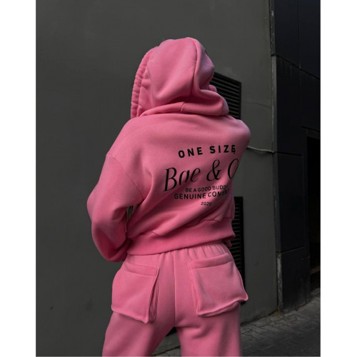 - Комплектация: худи на молнии с капюшоном и карманами, джоггеры с объемными карманами