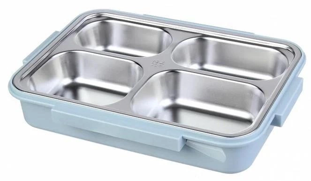 Характеристики этого ланч-бокса впечатляют: объем 1500 мл, 4 отделения из нержавеющей стали, размеры 24 х 17 х 3.5 см. Голубой цвет и стильный дизайн придают ему эстетическое привлекательность.