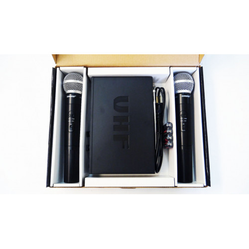Два легких радиомикрофона удобных тем ,что их можно длительное время держать в руках, например использовать в школах и детских праздниках. Система защиты от магнитных и радио помех позволяет использовать эту систему в составе мощной звукоусилительной аппаратуры.