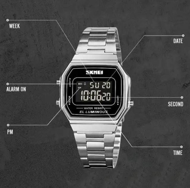 1.Электронный циферблат предлагает множество функций, включая будильник, календарь и секундомер.