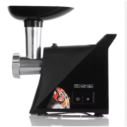 Имеет функцию реверса, насадки для колбас и кеббе, а также систему защиты двигателя от перегрева.