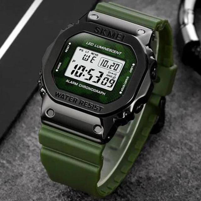 Ремешок из каучука обеспечивает комфортную посадку на руку, а также является прочным и долговечным. Часы оснащены светодиодной подсветкой, которая позволяет легко читать время в темноте.