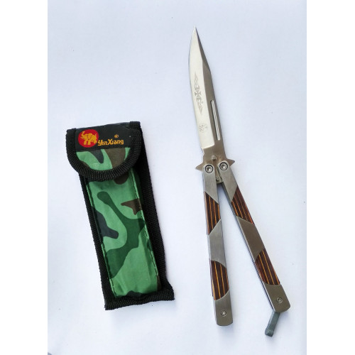 Нож бабочка АК-12 Нож бабочка имеет особую конструкцию, поскольку клинок скрывается в рукояти. При открытии рукоятки ножа делают оборот на 180 градусов в разных направлениях.