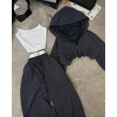 Костюм 3-ка (топ + кофта + штаны) Модель: 1530-259/1 Цвета: графит, шоколад, черный, серый меланж, розовый