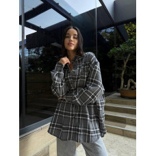 Оверсайз рубашка Модель: 1432-129 Цвет: серый + черный, серый + оранж, серый + розовый, изумруд, беж, шоколад, шоколад, розовый