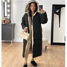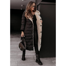 Удлиненное пальто на меху Модель: 1422-177 Цвет: бежевый, черный