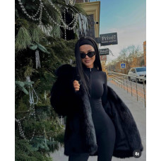 Шуба-дубленка женская с капюшоном (двусторонняя) Модель: 1553-8225
