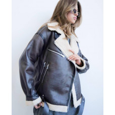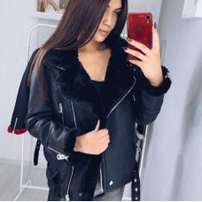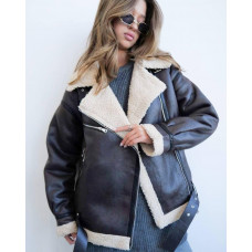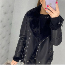 Дубленка женская с искусственным мехом и металлической молнией Модель: 1553-586