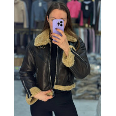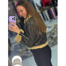 Дубленка женская с искусственным мехом и металлической молнией Модель: 1553-586