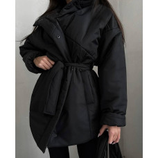 Куртка женская на пуговицах с поясом Модель: 1550-3092 Цвет: черный, серый