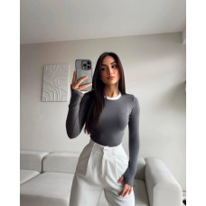 Универсальный базовый лонгслив из турецкого рубчика Модель 1377-0131 Цвет графит, черный, белый