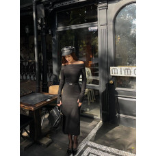 Платье с открытыми плечами (утепленное) Модель: 824-1608 Цвет: черный, шоколад, бежевый