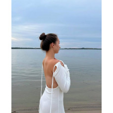 Женское изысканное платье с завязками по спинке Модель: 1550-3086 Цвет: белый, черный, серый, мокко