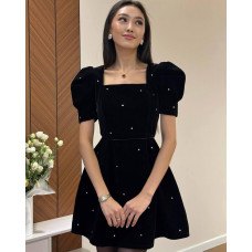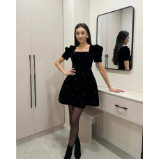 Женское платье с камушками черная, костюмка с камушками Модель: 1554-1345