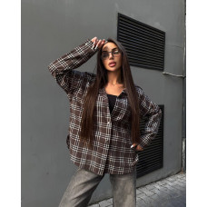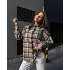 Рубашка в клетку оверсайз Модель: 1492-1130 Цвет: бежевый, серый