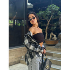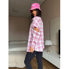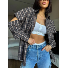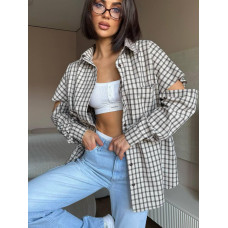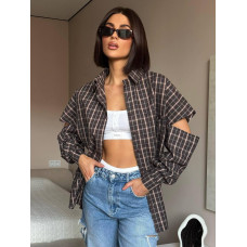 Рубашка женская клетка с рваными рукавами (oversize) Модель: 1425-1059 Цвет: шоколад, светлый беж