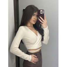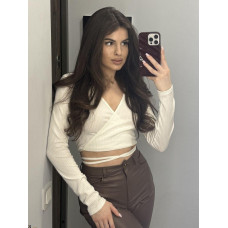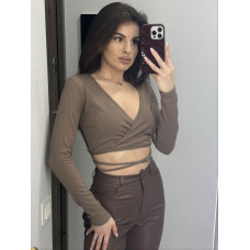 Кофточка женская на запах с завязками на талии Модель: 1550-1382 Цвета: мокко, голубой, черный, белый, беж, электрик