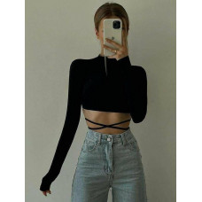 Стильный, обтягивающий лонгслив с молнией и вырезом для пальчиков Модель: 824-1393 Цвет : Черный