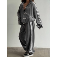 Костюм велюр с лампасами (олимпийка + джоггеры) Модель: 1493-0776 Цвет: графитовый, черный