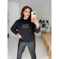 Костюм женский из экокожи и трикотажа двунитка Модель: 871-4327 Цвет: шоколадный, черный (брюки - черные в обоих вариантах)