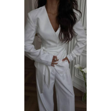 Костюм женский с поясом Модель: 847-1032 Цвет: белый, шоколад, черный