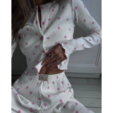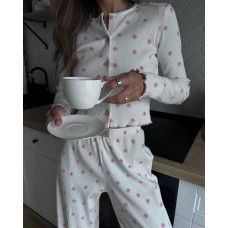 Пижама женская рубчик принт Модель: 776-935 Цвет: молоко