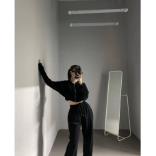 Костюм женский флисовый оверсайз: кофта на молнии и штаны палаццо Модель: 1550-4255 Цвет: черный, графит, шоколад, мокко