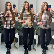 Костюм из трехнитки на флисе + мех Тедди Модель: 1528-661 Цвет: мокко+белый, черный+красный