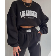 Спортивный костюм женский оверсайз на флисе р.42-46, 48-50 Модель 1526-2329 Цвет: черный, светло-бежевый, горький шоколад