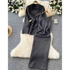 Костюм женский двойка с кардиганом Модель: 1466-126 Цвет: черный, шоколадный, молочный