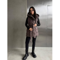 Жилетка женская утепленная с экохутром Модель: 1555-5750 Цвет: шоколад, черный