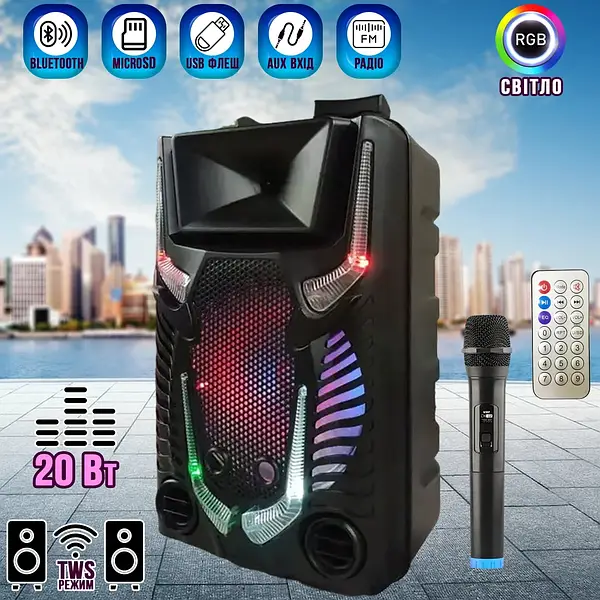 Колонка с микрофоном RX-1225A позволит вам прослушивать любимую музыку дома и в путешествиях. Достаточно компактная и легкая в транспортировке колонка, имеет колеса и удобную ручку.