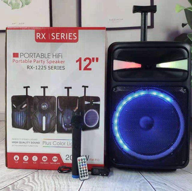 Основу системы составляет 12-дюймовый динамик. Благодаря встроенному аккумулятору портативную колонку RX-1225A можно использовать для небольших выступлений, презентаций и мероприятий на улице.