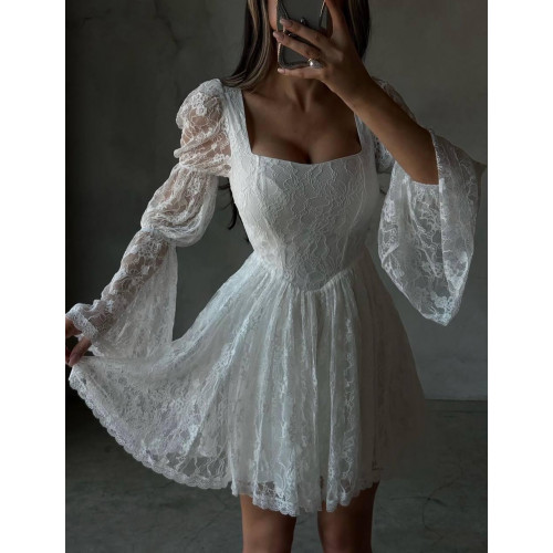 Изысканное кружевное платье с пышной юбкой - это идеальный вариант для праздничных событий, фотосессий или романтических вечеров. Легкая ткань гипюр с подкладкой не осветляется, дарит комфорт и смотрится элегантно. Объемные рукава добавляют образу шарма, а потайная молния сбоку обеспечивает удобство при одевании. Универсальная модель, которая подчеркивает женственность и создает красивый силуэт.