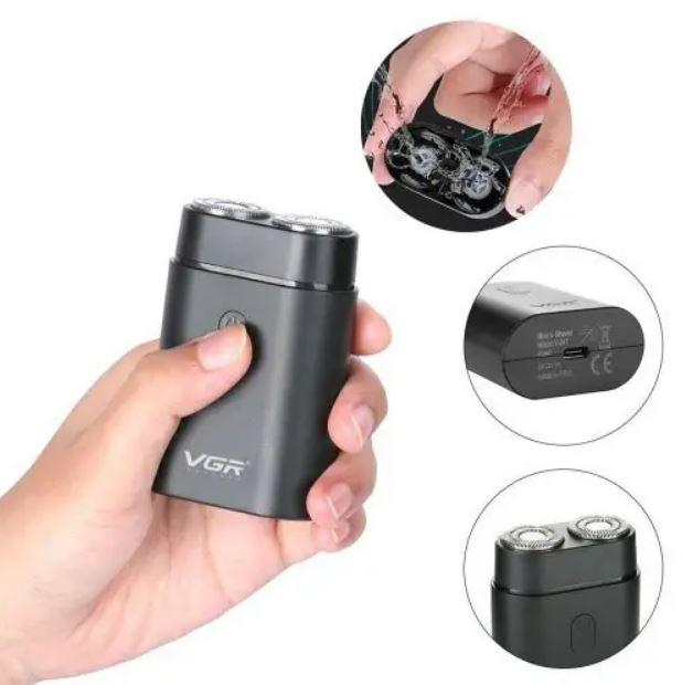 Портативная электробритва VGR V-341 - дорожная бритва для гладкого сухого бритья, рекомендована для чистого безболезненного бритья щетины до 2 мм.