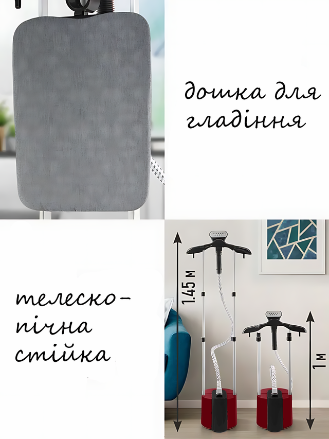А знаешь, что круче всего? Он работает 2-в-1: можно отпаривать вещи вертикально (прямо на вешалке), а можно разложить и погладить горизонтально, как на мини-гладильной станции. Да-да, забудь про утюг — он теперь без работы.