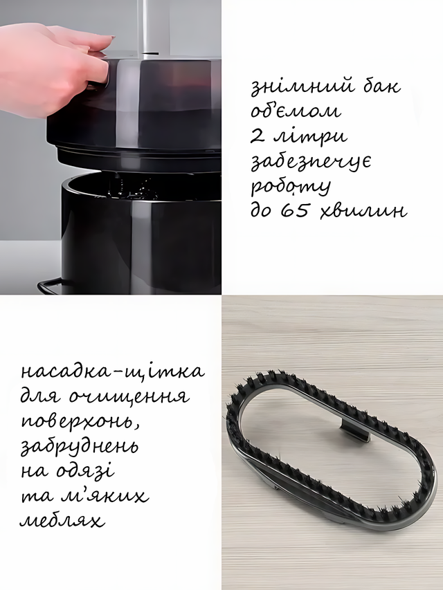 - Съёмный бак 2 л – до 60 минут непрерывной работы.