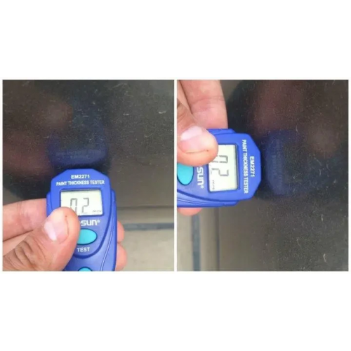 Этот прибор уникален среди автомобильных толщиномеров лакокрасочных покрытий по соотношению цена-характеристики. Толщиномер краски имеет очень малые размеры (по сравнению со спичечной коробкой), благодаря чему Вы можете всегда иметь прибор под рукой. Несмотря на свои маленькие размеры, прибор имеет цифровой дисплей, а также с помощью этого прибора можно точно проверить толщину краски на любом автомобиле независимо от того, сделаны детали его кузова из стали или алюминия. Так как толщиномер сконструирован для измерения толщины немагнитного покрытия (такого как краска, эмаль, пластик, эпоксидная смола, шпатлевка и т.д.) на железе, стали или алюминии.