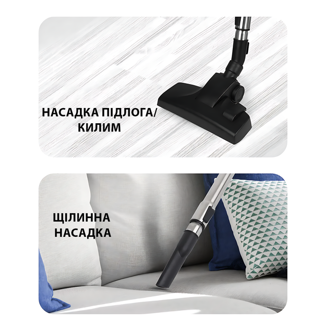 - Количество насадок: 2 шт. (щелевая, ковер/пол).